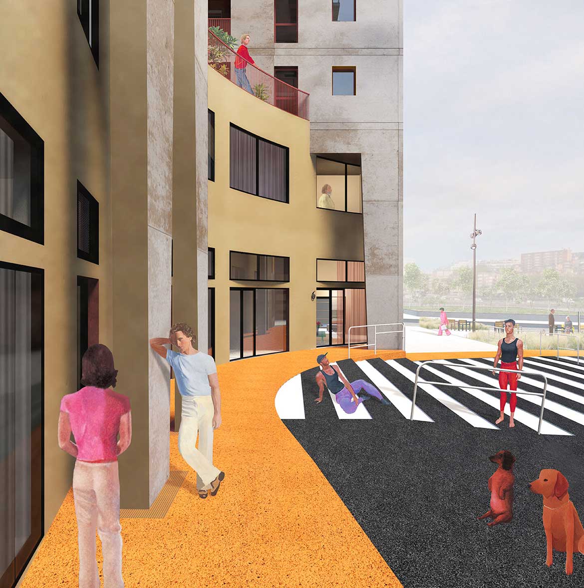The second marking, the “Mini-Masterplan”, reproduces on the ground the footprint of the five iconic START-Ivry buildings. Oriented like the real project and drawn at roughly 1:30 scale, it invites visitors to read the architecture in situ, enhancing spatial legibility and reinforcing a sense of recognition and attachment among residents and passers-by.